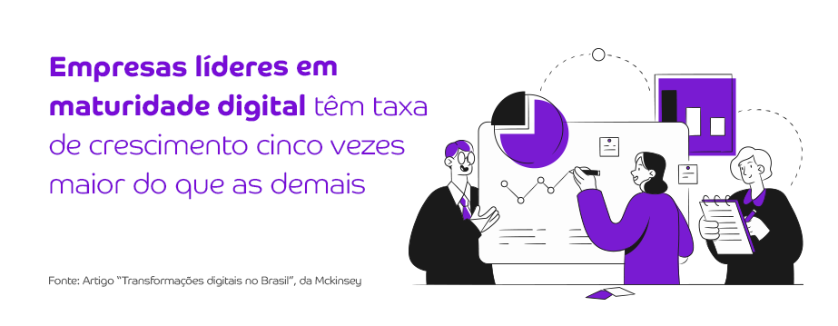 Com essas informações, fica claro que a verdadeira transformação digital ocorre quando toda a empresa se adapta à nova realidade: um mundo mais dinâmico, ágil, com evoluções constantes, clientes mais exigentes, necessidade de postura analítica e colaboradores guiados por propósitos claros.